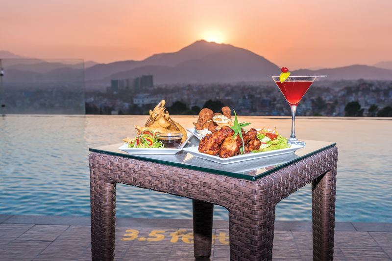 Among all the amenities, the roof top infinity swimming pool is the showstopper of the hotel. The pool is on the eighth floor and welcomes you with gush of cool wind and a magnificent view of the city. It is big enough for short laps but also just enough to remain peaceful. As you submerge yourself into the pool, the cold water washes your weariness away leaving you relaxed. The lively but serene ambience will recharge your inner peace and transfer you to a state of Zen. So de-stress yourself with a swim or laze around in the poolside. You can access the pool area from 10 a.m. to 7 p.m. The rate for swimming during weekdays (Mon-Fri) is NRs 1,500 for adult and NRs1,000 for children whereas during weekends (Sat/Sun) is NRs 2,000 for adults and NRs 1,500 for children, with a complimentary basket of French fries. They also have several attractive membership packages.