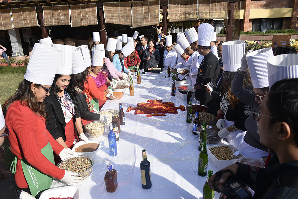 Cake mixing for Christmas has been an age-old tradition in Christian Belief and since Hotel Shangri~La, Kathmandu has been celebrating this festive spirit with its guest all these years. Our Executive Chef, Vikram Kumar and his team have done a wonderful preparation for the Cake Mixing Ceremony. In this event, our special guests from the travel industry and the corporate world, the celebrities and our in-house guest will join us for this immensely popular event. All these ingredients are mixed well and stored until Christmas to prepare the traditional Plum cakes. On Christmas Eve, this mixture will be blended with cake batter to make cakes, cookies, stolen bread, mince pie, Yule log any many more...